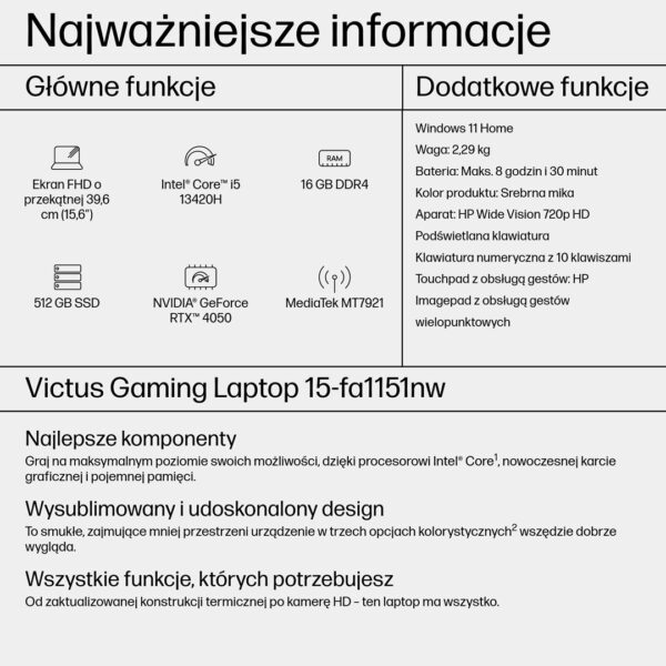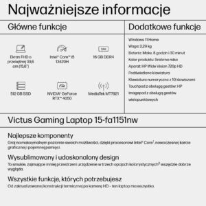 HP Victus 15-fa1151nw i5-13420H 15,6″FHD AG IPS 144Hz 16GB SSD512 RTX 4050_6GB BLKB 70Wh Win11 2Y Mica Silver