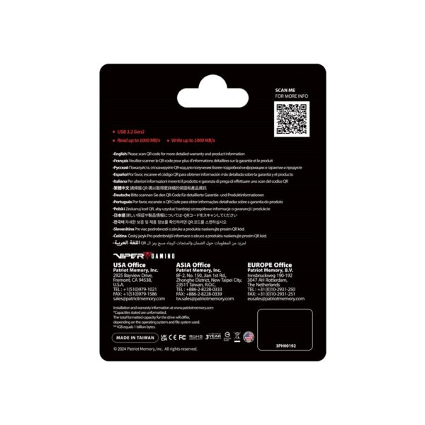 Interface du Solid State Drive (SSD) | USB 3.2 Gen 1 (3.1 Gen 1) Type-A |